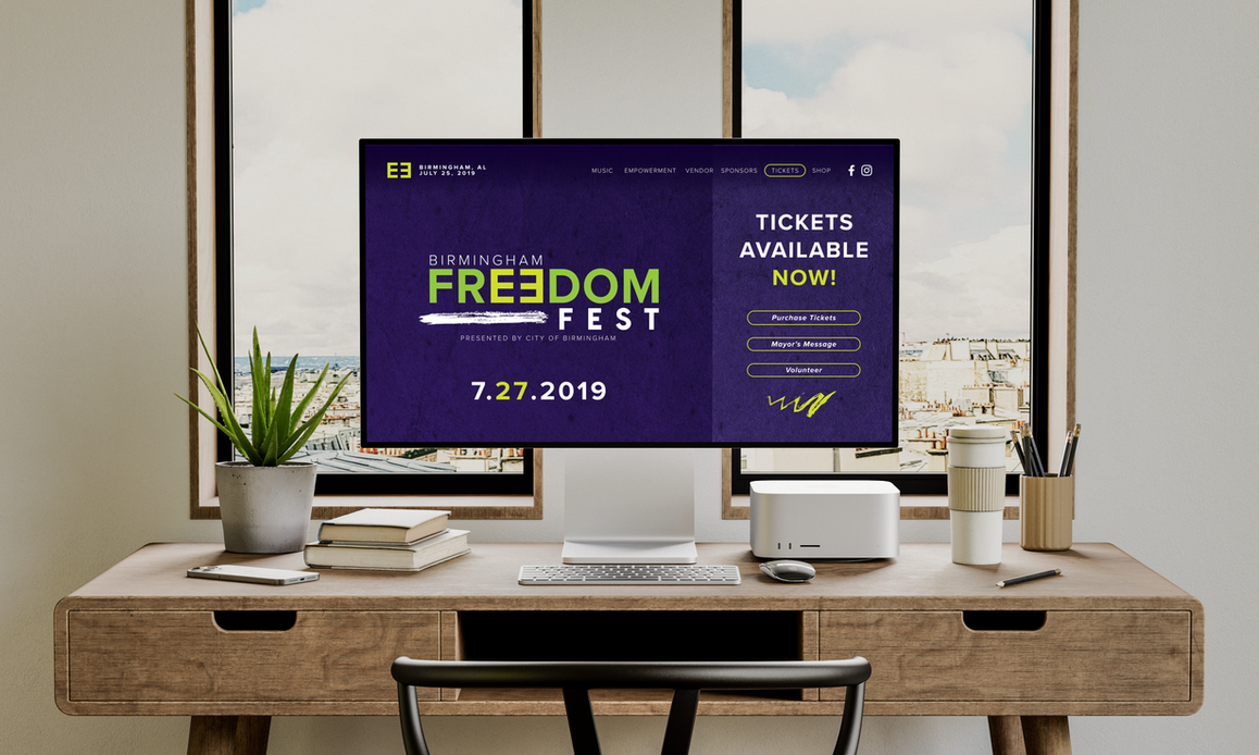 My responsibilities were to design the entire Freedom Fest BHM brand from the logos and websites to the event stage signage and t-shirts.